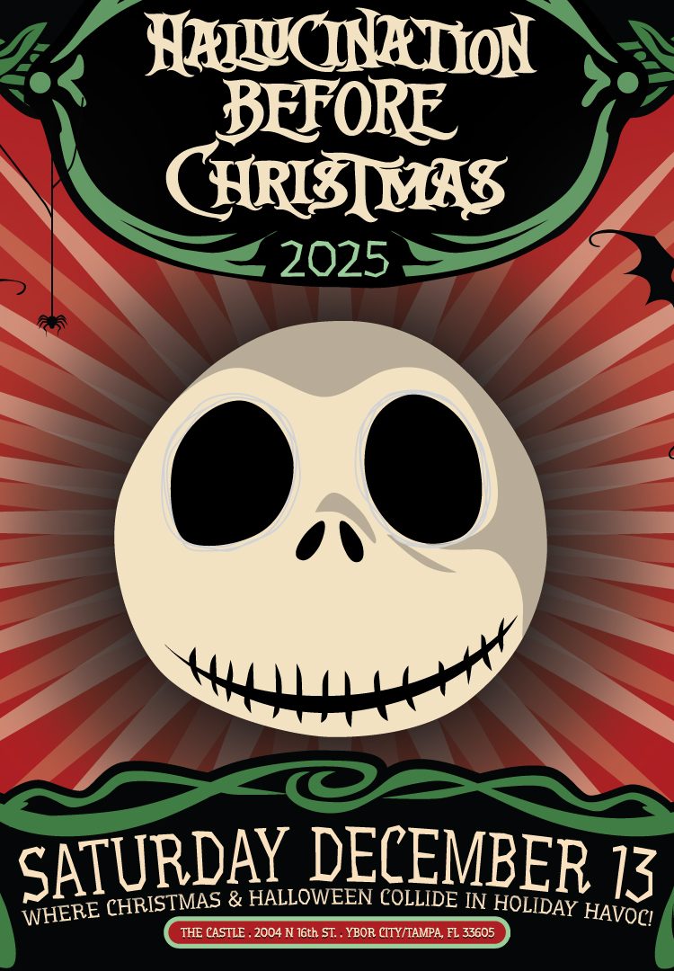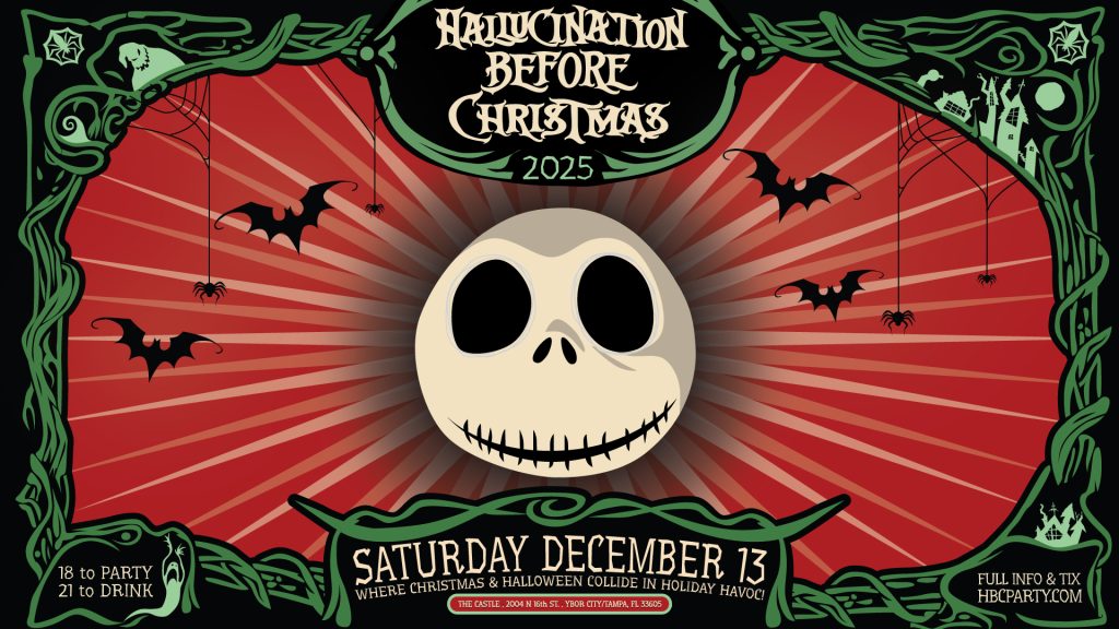 Hallucination Before Christmas 2025 – Saturday December 13th, 2025 – The Castle Ybor City/ Tampa, FL – Full info and tickets at www.hbcparty.com