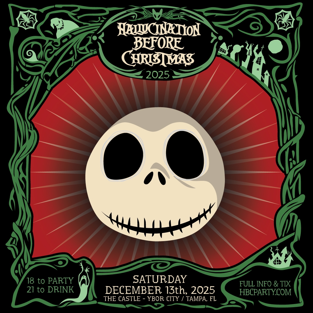 Hallucination Before Christmas 2025 – Saturday December 13th, 2025 – The Castle Ybor City/ Tampa, FL – Full info and tickets at www.hbcparty.com